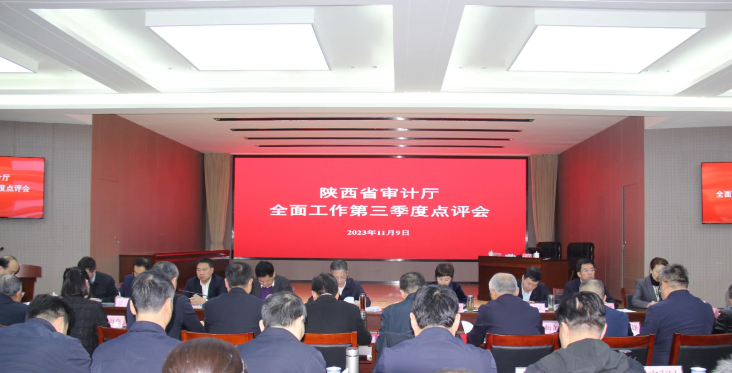 11月9日,省审计厅召开2023年三季度工作点评会议,深入学习贯彻习近平总书记在二十届中央审计委员会第一次会议上的重要讲话精神和来陕考察重要讲话重要指示精神,总结前三季度工作,研究部署当前重点任务。厅党组书记、厅长丁德明出席会议并讲话。厅党组成员、副厅长王健主持。厅领导班子成员出席并点评分管工作。